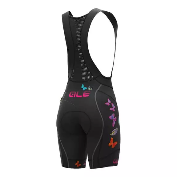 La salopette Alé Graphics PRR Butterfly da donna non solo garantisce un look colorato e vivace ma anche un’immediata sensazione di comfort. L’area a contatto con la sella è stata migliorata per garantire prestazioni e durata ottimali. L’inserto interno in silicone nella parte inferiore della gamba assicura una leggera pressione sulla coscia che permette alla salopette di rimanere nella posizione corretta per tutta la durata della giornata. Il tessuto ad onde larghe delle bretelle rende l’indumento più leggero e più aderente al corpo della ciclista.
