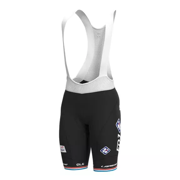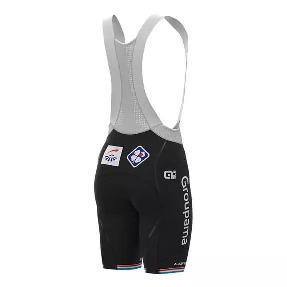 Salopette Groupama-FDJ 2022 Luxembourg Champion PR-System con struttura a pannelli multipli con una combinazione di tessuti a seconda della parte del corpo. Un tessuto nel cavallo che offre la massima traspirazione, leggerezza e resistenza all’abrasione. Le zone di compressione sono equilibrate grazie all’uso di diversi tessuti che offrono una compressione graduale nelle zone periferiche. Materiale aderente sulle gambe che non stringe. Free System Bib molto comodo, con un buon sostegno senza stringere. Rango di temperatura 18-30º.