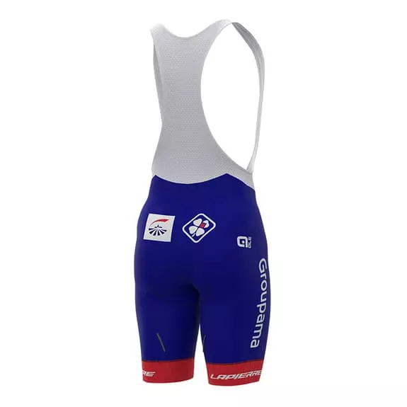 Salopette Groupama-FDJ 2022 con struttura a pannello multiplo e una combinazione di tessuti tra cui Lycra Performance 220 g/sqm. Offre un buon sostegno ai muscoli e un’eccellente copertura. Le bretelle di rete estremamente elastiche con fori molto piccoli permettono un adattamento perfetto. Orlo inferiore da 50 mm. LG STABILITY SYSTEM mantengono l’indumento fermo senza stringere. Rango di temperatura 18-30º.