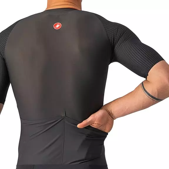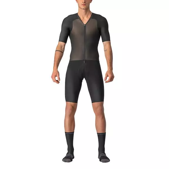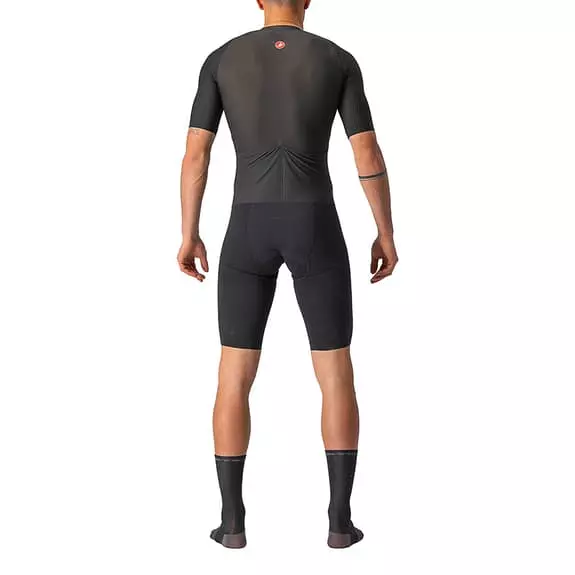 Il body Castelli BTW Rosso Corsa corto è progettato per le uscite dove la velocità è la priorità, e si assume i rischi necessari in ogni curva. Ispirato alla frase “Balls To the Wall”, coniata dai piloti militari negli anni ’60 quando spingevano gli aerei al limite, questo body utilizza ricerca e costruzione all’avanguardia nella ricerca della velocità: Analisi CFD, manichini di prova 3D, ricerca e test di tessuti, numerosi test nella galleria del vento e poi test WorldTour. Anche se la sua costruzione privilegia la velocità, i tessuti traspiranti permettono di mantenere un adeguato livello di comfort. I sacrifici in termini di tessuti e comfort significano una riduzione del 3% della resistenza aerodinamica complessiva rispetto al body Sanremo più veloce della sua classe. Quel 3% è un vero vantaggio, soprattutto a velocità più elevate, tra i 45-65 km/h. Incorpora il fondello professionale Progetto X2 Air.