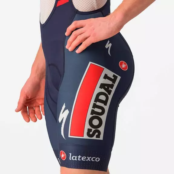 La salopette Soudal Quick-Step 2023 Competizione è perfetta per le gare del weekend, ma garantisce alte prestazioni e massimo comfort anche quando non si gareggia. Il tessuto principale Vortex e la fascia elastica GIRO4 alla fine della gamba provengono dal paraurti Free Aero Race 4, mentre il fondello Kiss Air2 offre il massimo comfort. Presenta una grande vestibilità che è garantita grazie al modello sviluppato dal team di Castelli. È stato progettato con le migliori conoscenze che Castelli ha nella produzione di confortevoli ed elevate prestazioni ma ad un prezzo accessibile.