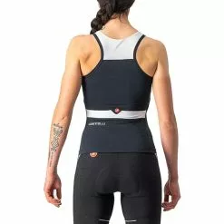 La salopette Castelli Prima da donna è realizzata con il nuovo tessuto Pro Dry Soft, che presenta una finitura liscia e opaca che è fresca a contatto con la pelle e allo stesso tempo assicura un elevato sostegno muscolare e una rapida asciugatura. Incorpora dettagli riflettenti ricamati e la fascia GIRO3 alla fine della gamba presenta una fascia antiscivolo intrecciata nel tessuto.