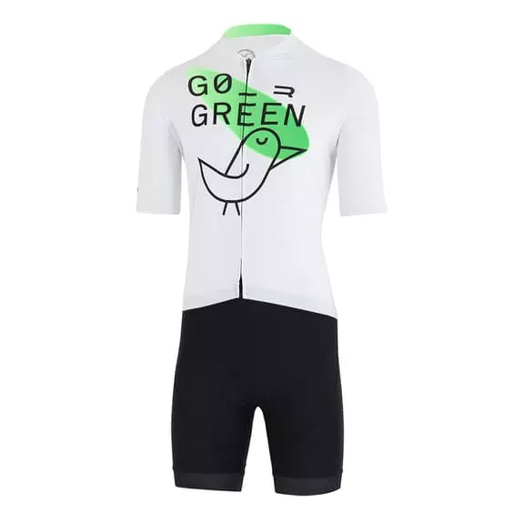 È caratterizzato da un sottile colletto alla francese per una maggiore aerodinamica, un’ottima libertà di movimento e, allo stesso tempo, morbidezza e traspirabilità.