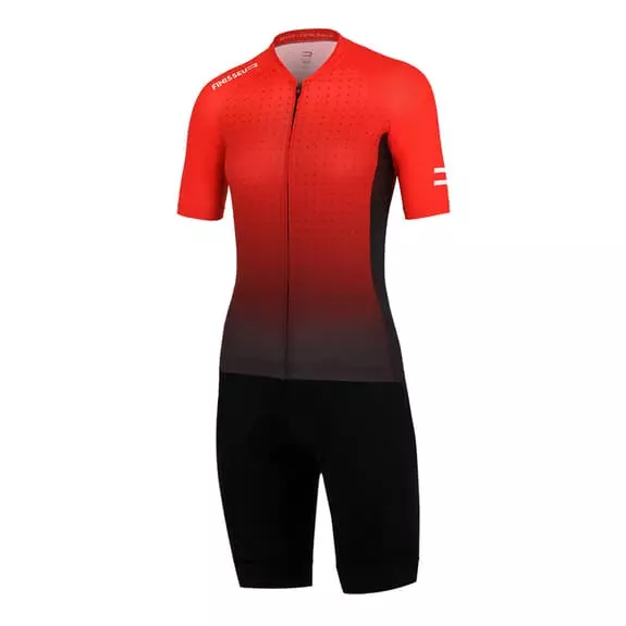 È caratterizzato da un sottile colletto alla francese per una maggiore aerodinamica, un’ottima libertà di movimento e, allo stesso tempo, morbidezza e traspirabilità.