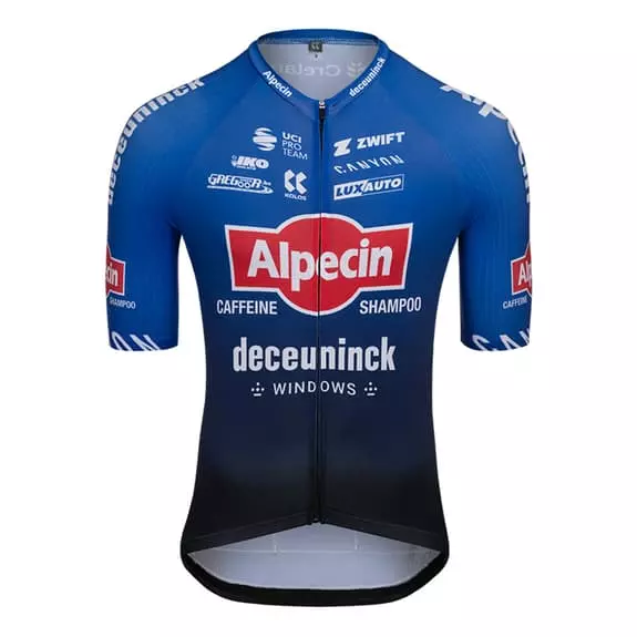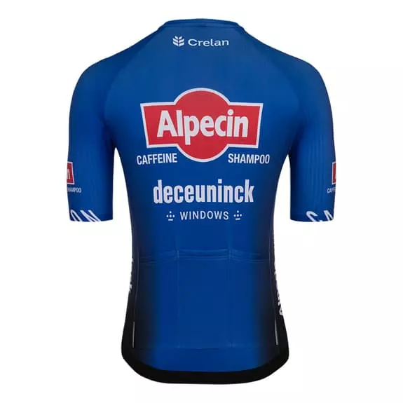 La maglia Team Alpecin-Deceuninck Tour de France 2022 a manica corta è una maglia da competizione della gamma Elite. La maglia combina due materiali altamente funzionali ed è costruita con un design aerodinamico e un taglio anatomico aderente alla pelle. Il tessuto elasticizzato è stato utilizzato sui pannelli anteriori e posteriori per fornire traspirabilità e il materiale Stripes è stato utilizzato sulle spalle per migliorare l’efficienza aerodinamica sulla bicicletta.