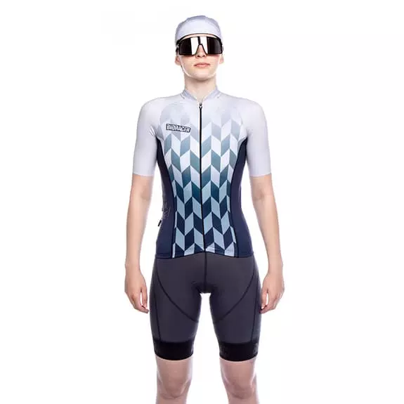 La maglia Bioracer Vesper da donna è arricchita e si presenta come un fuoristrada da competizione in condizioni da moderate a calde. Questa maglia aderente al corpo è realizzata in lycra elasticizzata a due vie per la massima flessibilità, mentre il pannello posteriore in lycra elasticizzata a una via mantiene la maglia al suo posto.