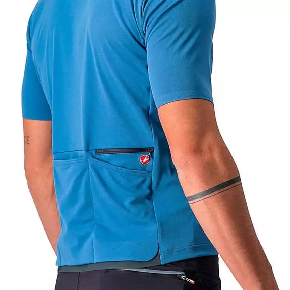 La maglia Castelli Unlimited Allroad a manica corta combina le caratteristiche più avanzate di Castelli in termini di comfort, leggerezza e resistenza, rendendola un capo ideale per il Gravel. È realizzata in un tessuto italiano leggero e morbido al tatto che mantiene un’eccellente gestione dell’umidità e un ampio tratto elastico orizzontale, ma con un limitato tratto elastico verticale per evitare che le tasche si affloscino. Blocca anche il 98% dei raggi UV. La maglia ha una vestibilità regolare, più dritta sul corpo e con spazio extra sul petto. Il disegno è sobrio e tecnico. Con la vestibilità in mente, presenta dettagli come una zip frontale YKK coperta, una quarta tasca con zip per le chiavi e le estremità delle maniche senza cuciture.