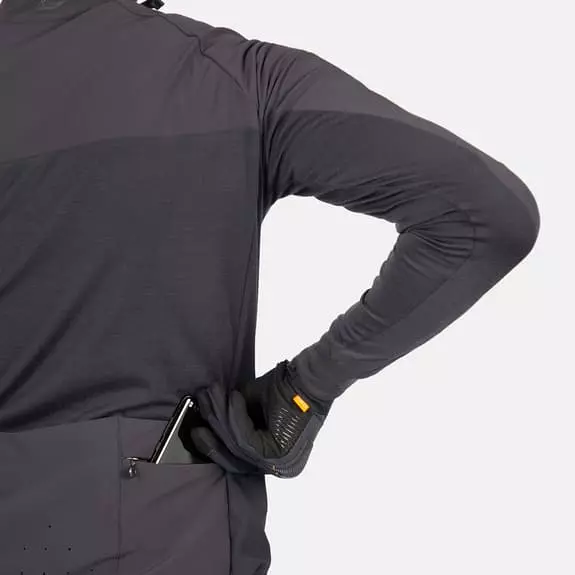 La maglia Endura GV500 manica lunga è progettata per la guida in modalità Gravel e Off-road, con caratteristiche tecniche ottimizzate per questo scopo. La costruzione gli conferisce una maggiore durata, capacità di carico e di stoccaggio. Il corpo principale è realizzato in misto lana merino di medio peso, che garantisce un’eccellente termoregolazione e controllo degli odori. Uno strato di tessuto elasticizzato leggero sulle spalle, sulla parte superiore del petto e sulle tasche posteriori offre un’ulteriore protezione dal vento e dagli spruzzi. Dispone di un ampio spazio di archiviazione, grazie a 3 grandi tasche posteriori aperte e a 2 tasche laterali in rete di facile accesso. Dispone inoltre di una tasca sul petto con zip e di una tasca posteriore.