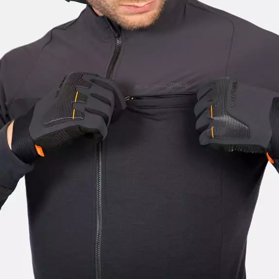 – Le leggere sovrapposizioni in tessuto elasticizzato sulla zona del petto e sulle maniche aggiungono resistenza e protezione dal vento