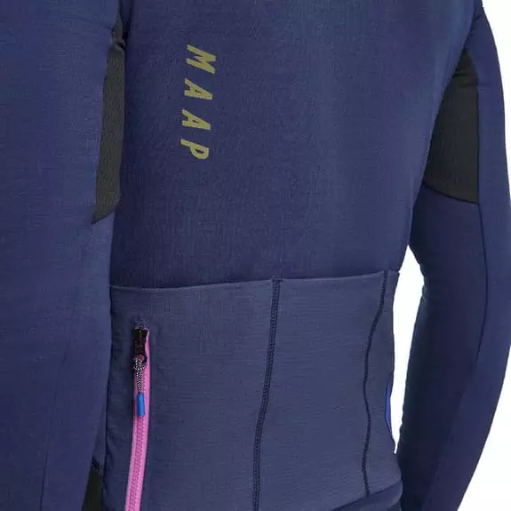 La maglia MAAP Alt Road a manica lunga è progettata per le uscite autunnali e per quelle invernali, se indossata sotto una giacca. È realizzata con la tecnologia brevettata Natural Match, a base di lana merino. Le fibre naturali della maglia sono rinnovabili e sostenibili, senza compromettere le prestazioni. I pannelli laterali e le tasche in tessuto elasticizzato ripstop forniscono una maggiore durata e un alto livello di termoregolazione.