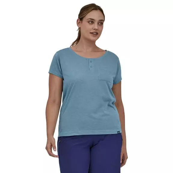 La maglia Patagonia Trail Henley a manica corta da donna combina un tessuto tecnico traspirante con un’estetica casual.