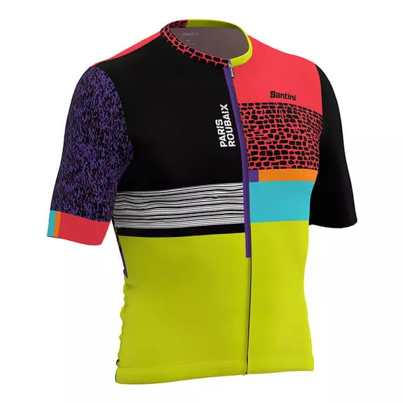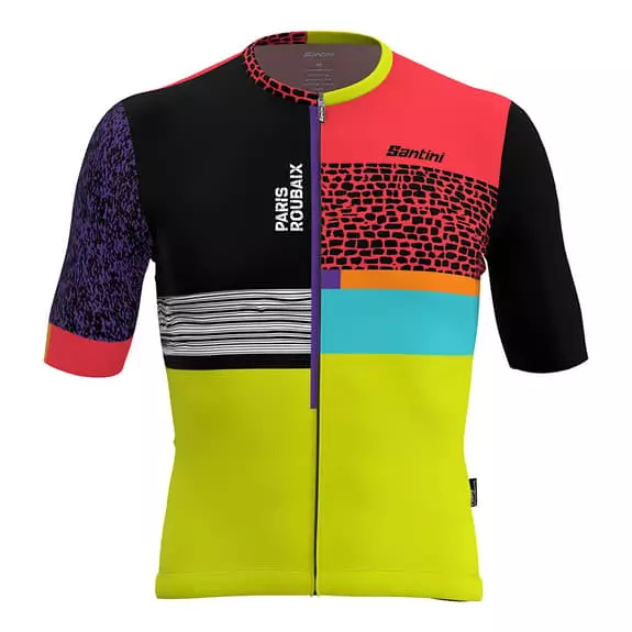 La maglia Santini Paris-Roubaix Forger Des Heroes a manica corta presenta un design speciale dedicato alla classica Paris-Roubaix, popolarmente conosciuta come’Inferno del Nord’. Creata sulla base di una vestibilità classica con attenzione ai dettagli critici. Il tessuto in mesh ultraleggero Silkiss Sahara utilizzato nella costruzione del capo è la soluzione perfetta per la guida ad alte temperature, mentre l’inserto elastico in silicone intorno alla base del corpo della maglia ne assicura la posizione durante la guida. Rifinita con una zip completa, dettagli riflettenti e una presa elastica ultra-confortevole intorno all’orlo della manica.