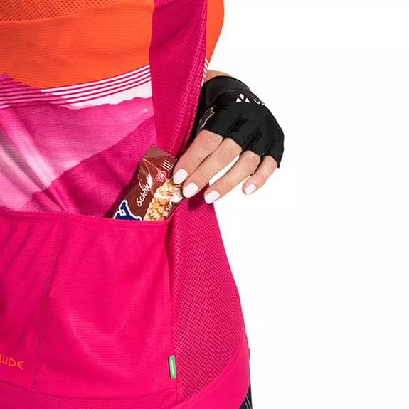 La maglia Vaude Majura Tricot II da donna è dotata di un colletto alto, una cerniera frontale completa e tre tasche posteriori per gli oggetti di valore e la giacca a vento. Il silicone integrato in vita impedisce inoltre che la maglia si sollevi e il materiale leggero assicura comodità d’uso anche in caso di salite impegnative. La maglia Majura Tricot è pensato per ciclisti ambiziosi che apprezzano la qualità.