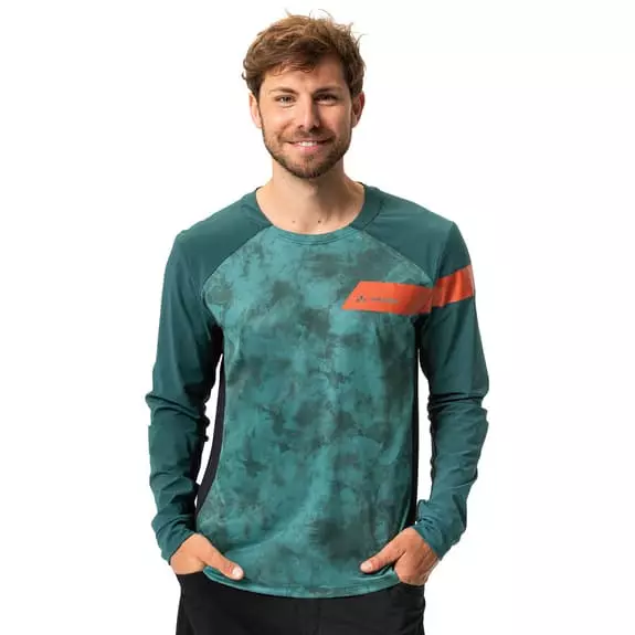 La maglia a maniche lunghe Vaude Moab PRO è un capo altamente tecnico con una costruzione ibrida per le uscite in MTB. La sua struttura in tessuto elasticizzato ad asciugatura rapida ti permetterà di pedalare con un comfort eccellente. Le zone traspiranti e antivento garantiscono protezione e ventilazione allo stesso tempo. L’etichetta Vaude Green Shape identifica che i prodotti sono funzionali ed ecologici e sono realizzati con materiali sostenibili e certificati bluesign.