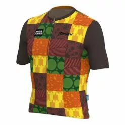 Maglia Santini Delta Optic Polartec Manica Corta Bianco Grigio-blu Nero Arancione – Slim Fit