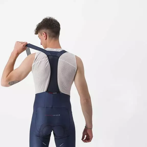 La salopette Castelli Free Aero Rosso Corsa Kit è un capo ad alte prestazioni per allenamenti intensi e gare. Presenta un’innovativa struttura a 5 pannelli, rispetto ai 10 della generazione precedente, per un’eccellente vestibilità ergonomica. Spalline minimaliste a trama aperta per la massima circolazione dell’aria. Per evitare imprevisti, il carré è stato rinforzato in modo che le bretelle rimangano al loro posto, mentre il dorso in rete è più stretto per mantenere la copertura al minimo senza che il pantaloncino si muova. La pratica tasca al centro della schiena offre uno spazio aggiuntivo. Questa salopette non ha strisce antiscivolo sulle gambe, a seguito delle innovazioni apportate dopo 28 diversi prototipi. Il tessuto Forza 2 è composto per il 32% da lycra ad alto modulo per un sostegno muscolare eccezionale e la giusta compressione. Presenta profili riflettenti sul retro e tutti i loghi sono cuciti o in rilievo per una maggiore durata. Presenta il fondello Progetto X2.
